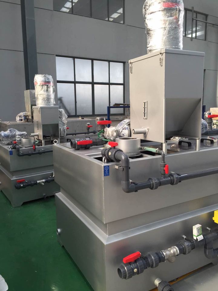 三厢式加药装置 SKZB系列三厢式加药装置是连续制备和投加聚合物溶液的自动化设备。其制备的原料可以是干粉药剂,也可以是液态化学药剂。它连续而高效的完成药剂的化合和混合,从而得到均质的有活性的聚合物溶液。该设备可广泛应用于市政污水处理、污水处理厂,造纸厂及其它工艺处理行业。 |