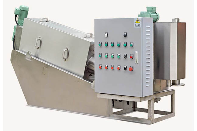 叠螺式污泥脱水机集全自动控制柜、絮凝调质槽、污泥浓缩脱水本体及集液槽于一体,可在全自动运行的条件下,实现高效絮凝,并连续完成污泥浓缩和压榨脱水工作,最终将收集的滤液回流或排放。